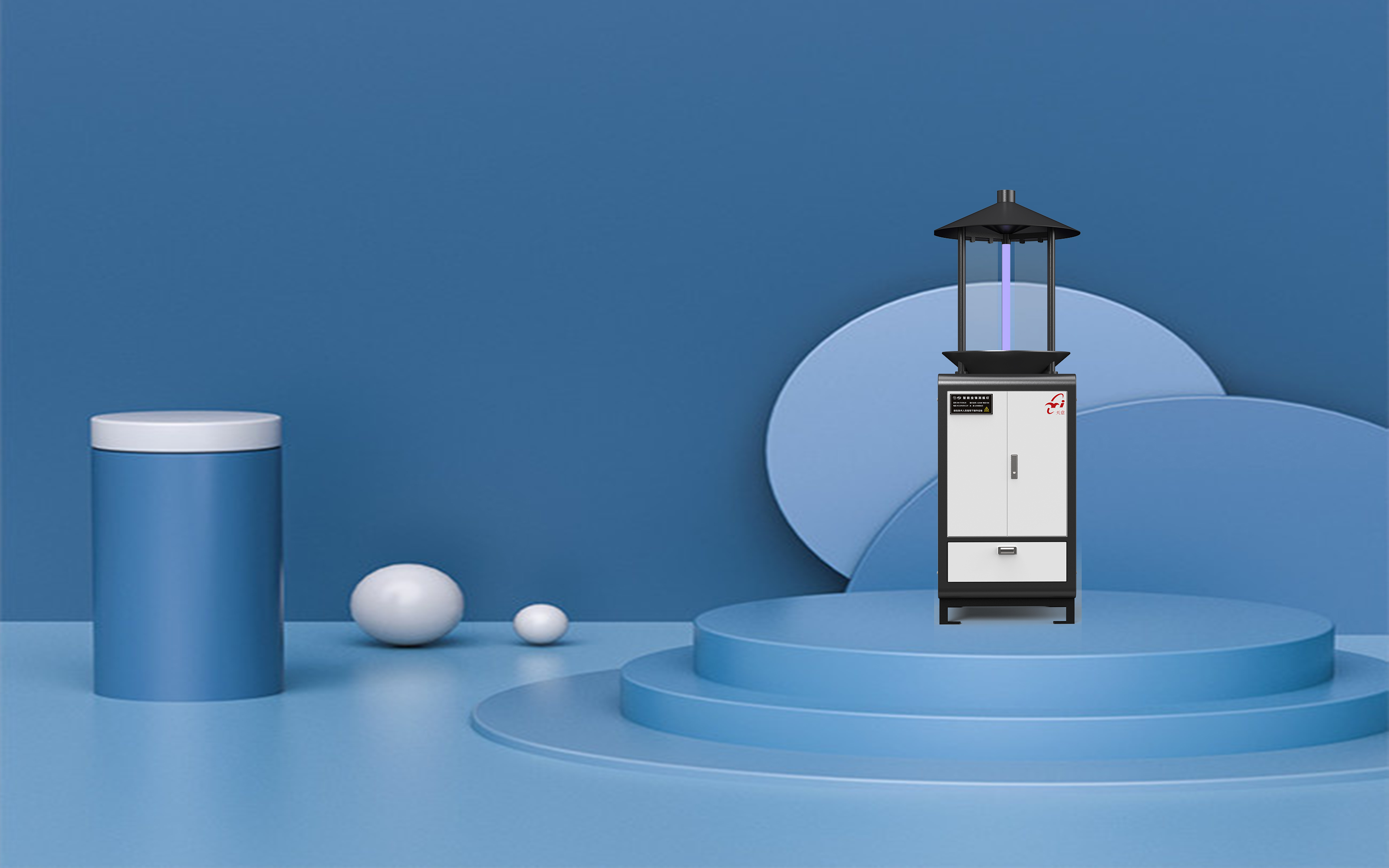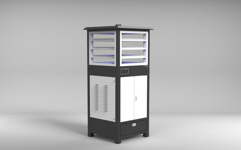 2.诱捕原理:紫外线诱虫灯发出令害虫敏感的光线致使害虫飞扑,撞击玻璃屏落到下端漏斗顺着打开的落虫通道滑进杀虫仓。